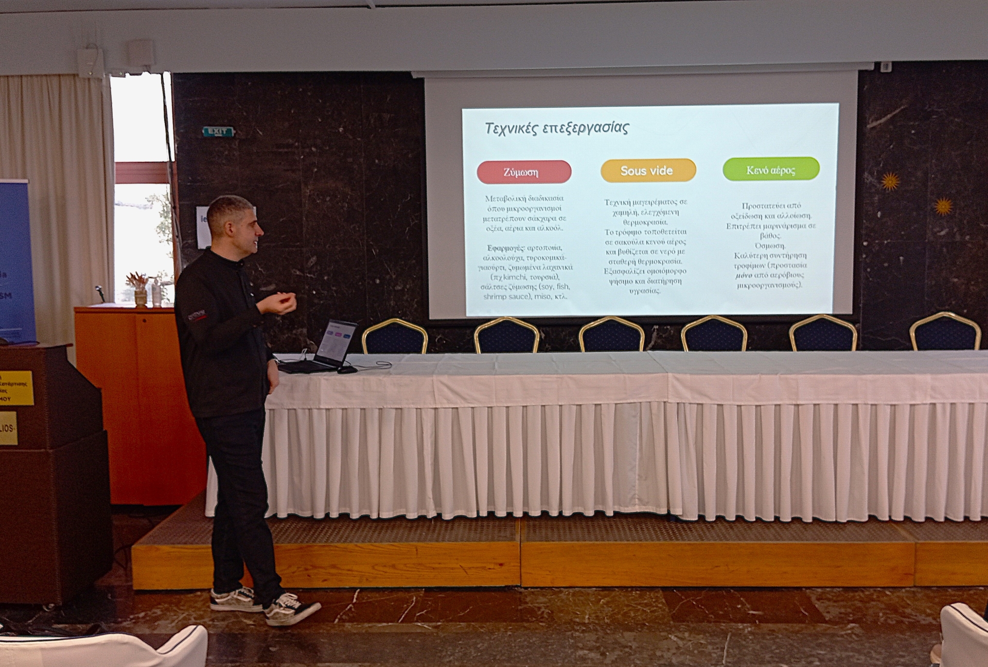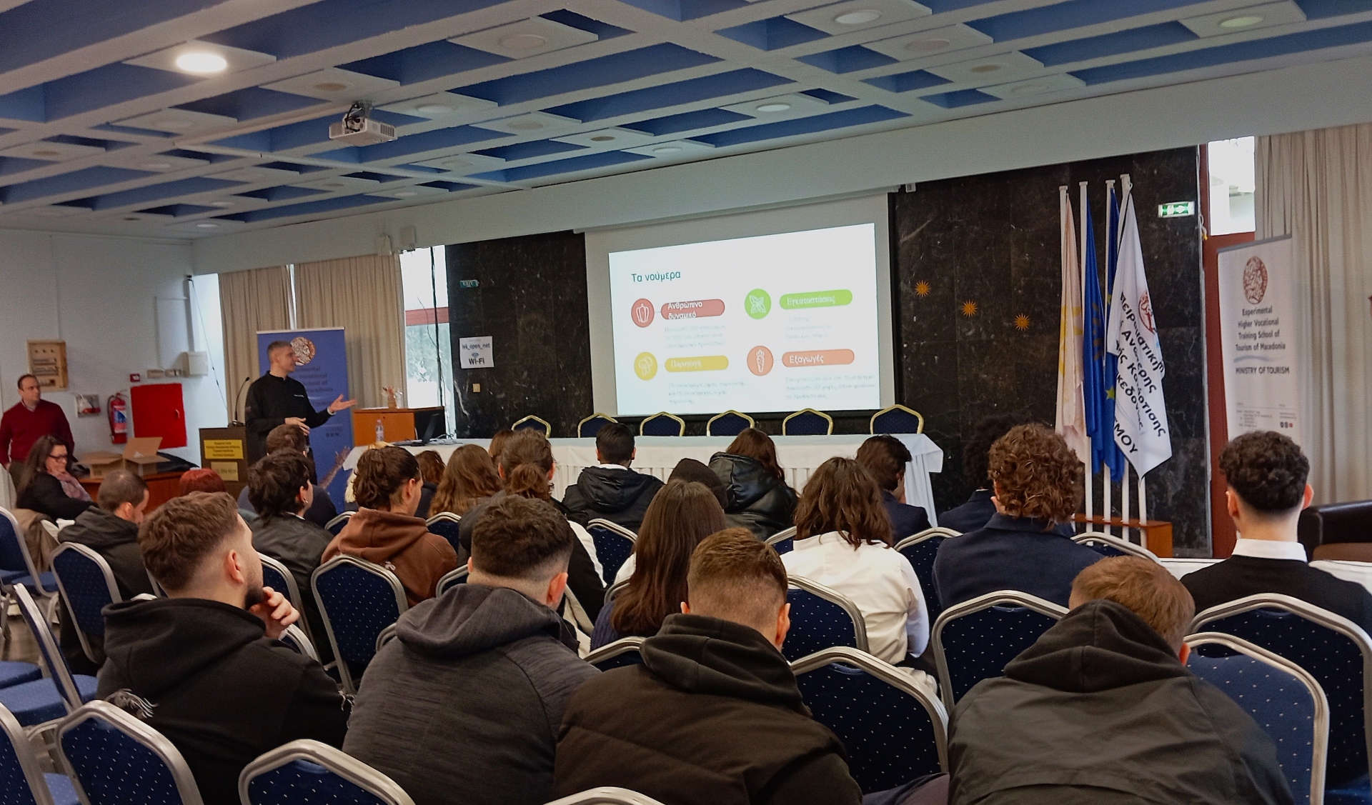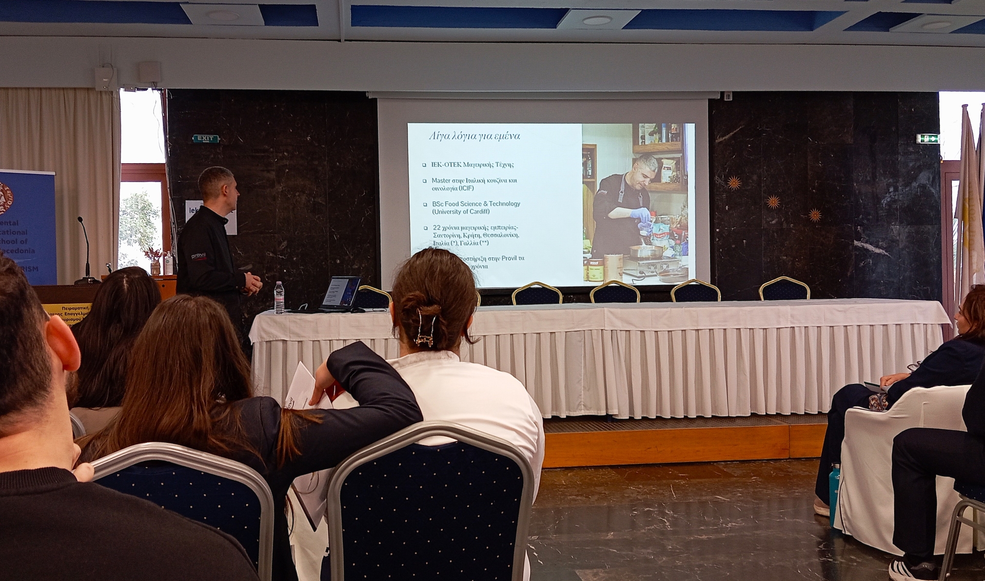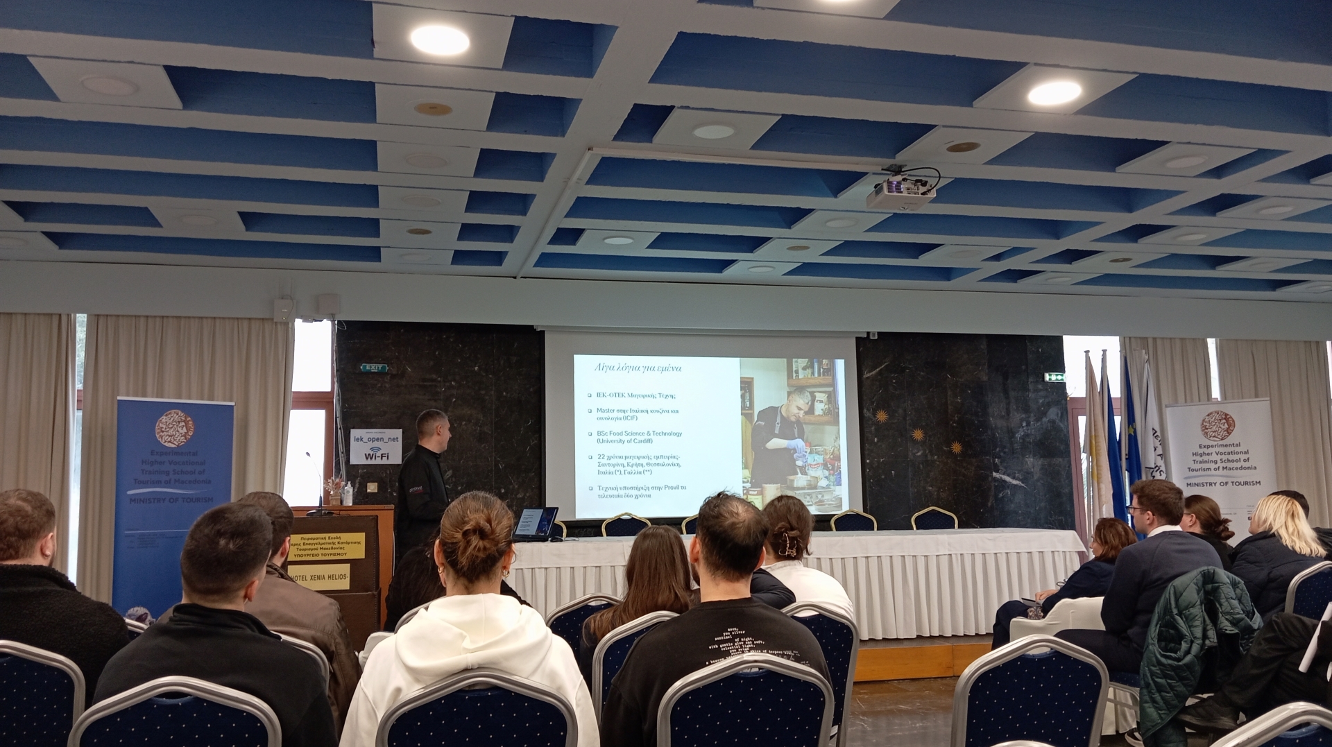 Το σεμινάριο πραγματοποιήθηκε στην αίθουσα πολλαπλών χρήσεων «Μέγας Αλέξανδρος» της Σχολής και το παρακολούθησαν σπουδαστές/στριες της ειδικότητας “Τεχνικός Μαγειρικής Τέχνης – Αρχιμάγειρας (Chef)”.